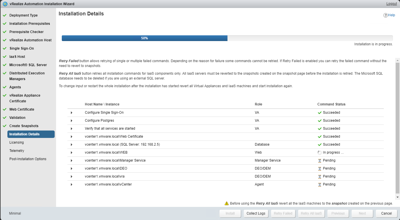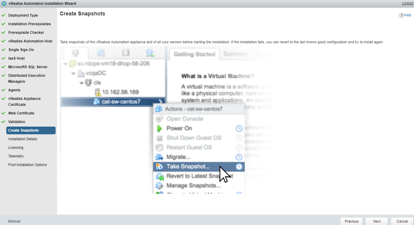 At this point installer will remind you to take snapshot of the nodes (vRA, IaaS host, IaaS DB etc) involved in this deployment.
