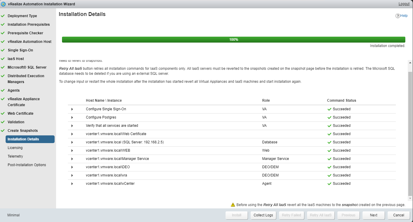 If you are planning to include IaaS along with vRA then make sure Install Infrastructure as a Service box is selected.