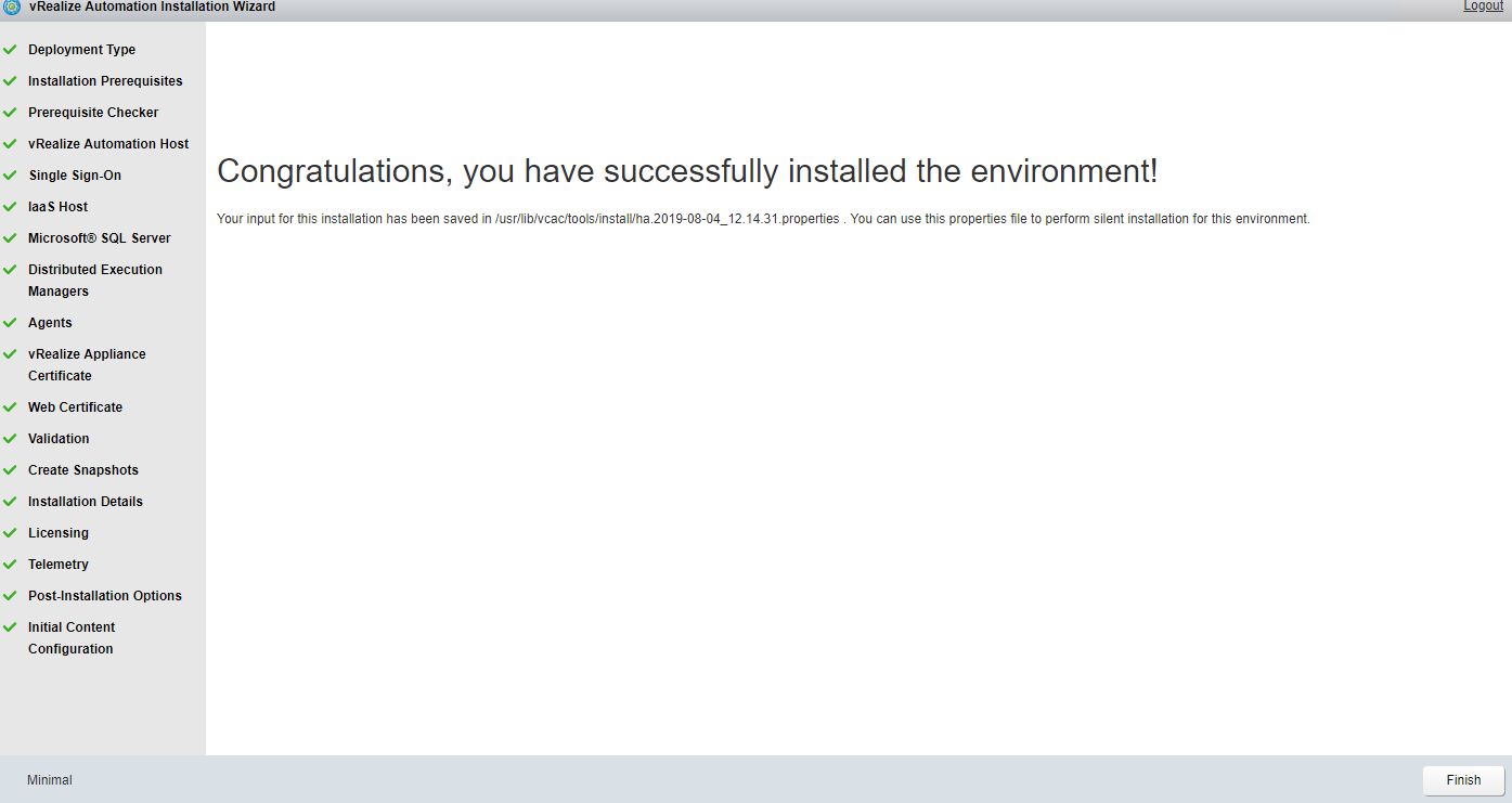 Now as you have successfully completed the vRA 7.6 installation. Clicking on finish will close the installation wizard.