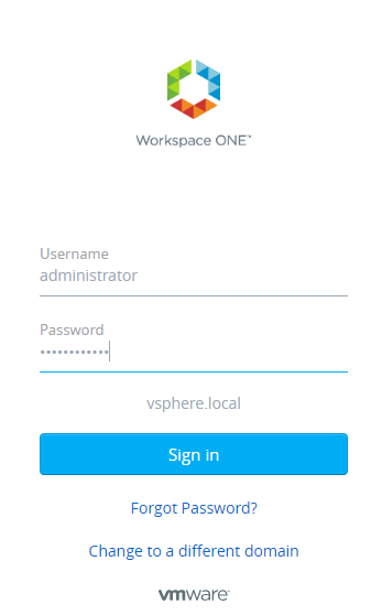 Login to vRA 7.6 appliance https://VRA-FQDN/vcac and you will be redirected to Workspace One page.