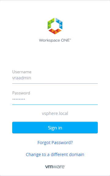 Login to vRA appliance https://VRA-FQDN/vcac and use administrator as username and password set during deployment.