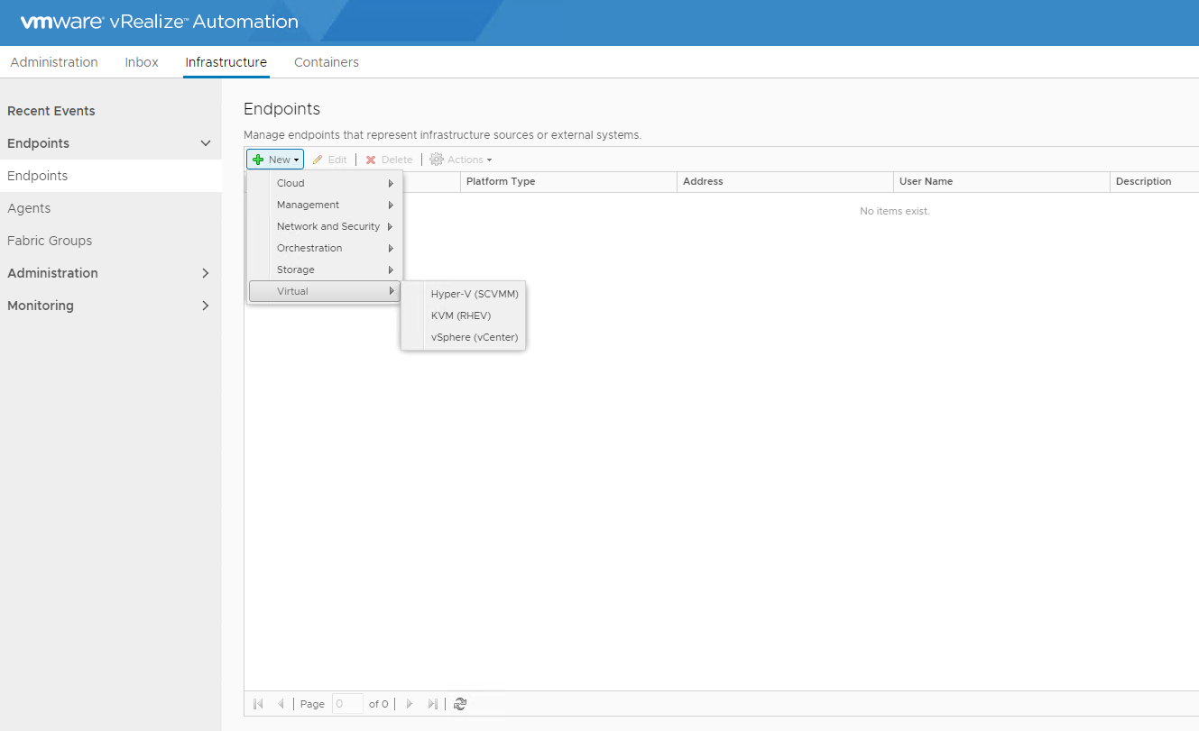 Endpoints are infrastructure sources that are consumed by vRealize Automation. These endpoints are used by vRA to provision virtual machines, networks etc. vRealize Automation 7.6 supports following endpoints: