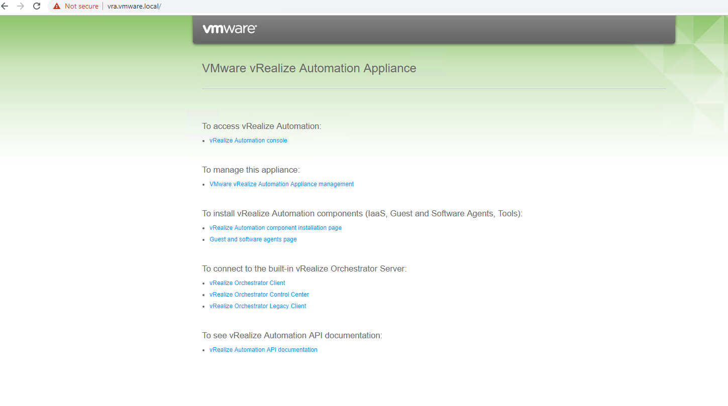 2. Type https://vra-fqdn and click on vRealize Orchestrator Control Center.