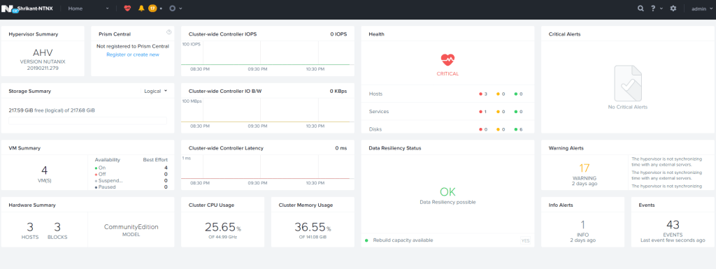 Once Nutanix CE activation is done, PRISM will load the home page.
