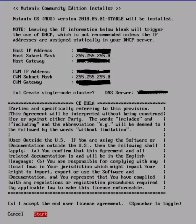 Specify the DNS server so that public servers names can be resolved. If DNS resolution fails then we won’t be able to register the Nutanix CE against the Next Community website post install.