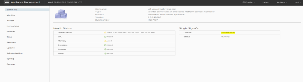We can further validate this change by logging into the vCenter Server Appliance Management Interface (VAMI) on port 5480.