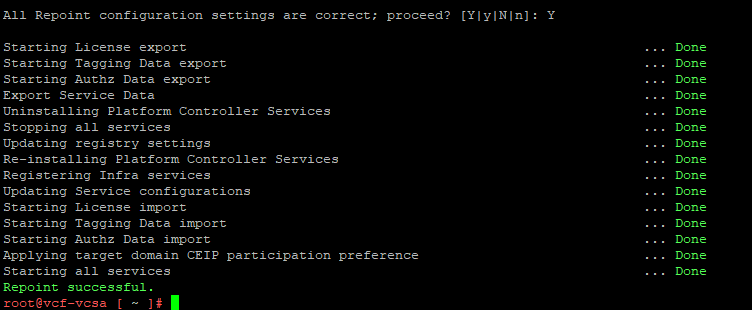 To continue, answer the question (Y or N) to confirm all settings are correct to proceed with the repointing operations.
