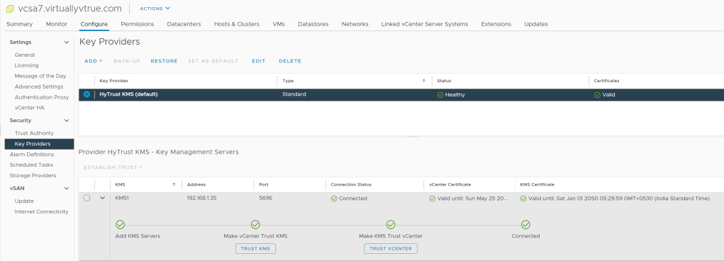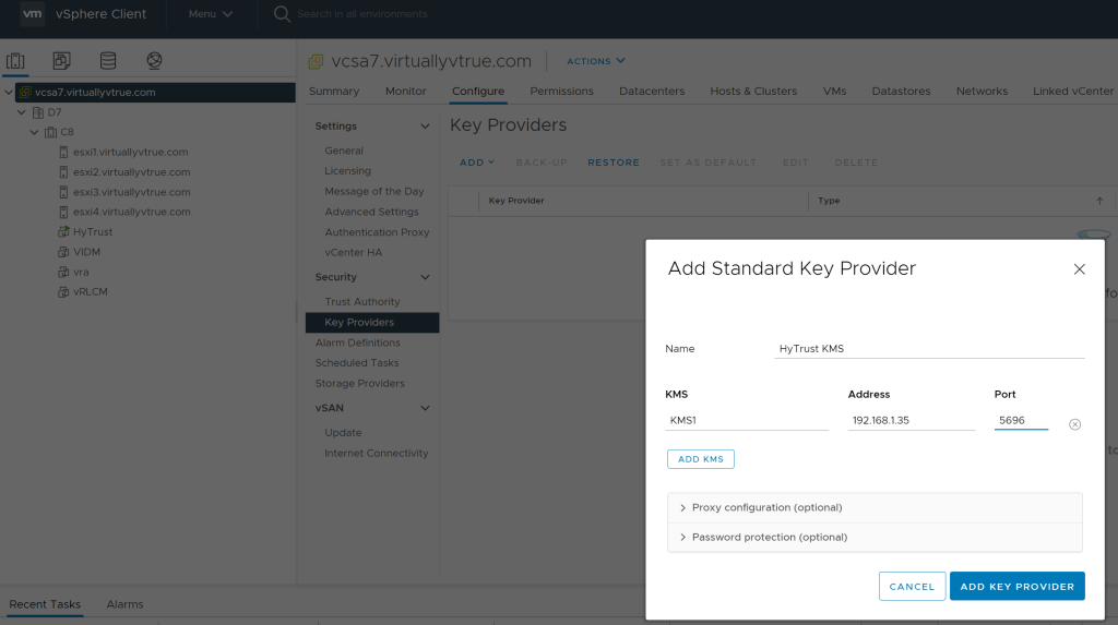 Step 4 – Adding HyTrust KMS Server to vCenter